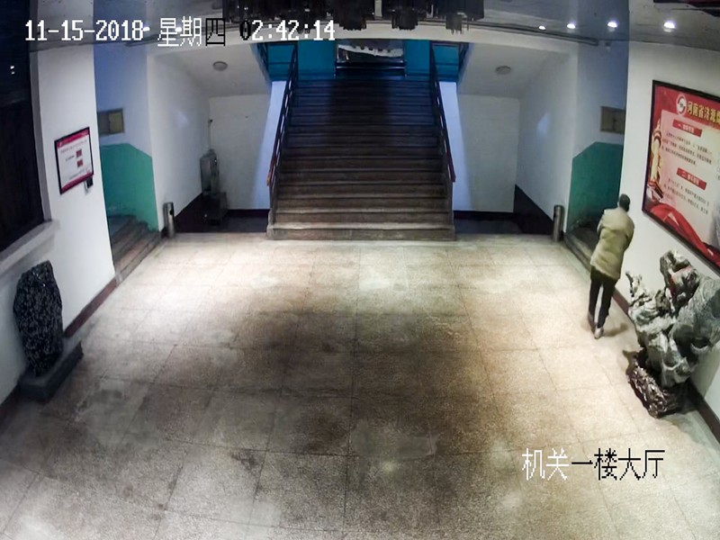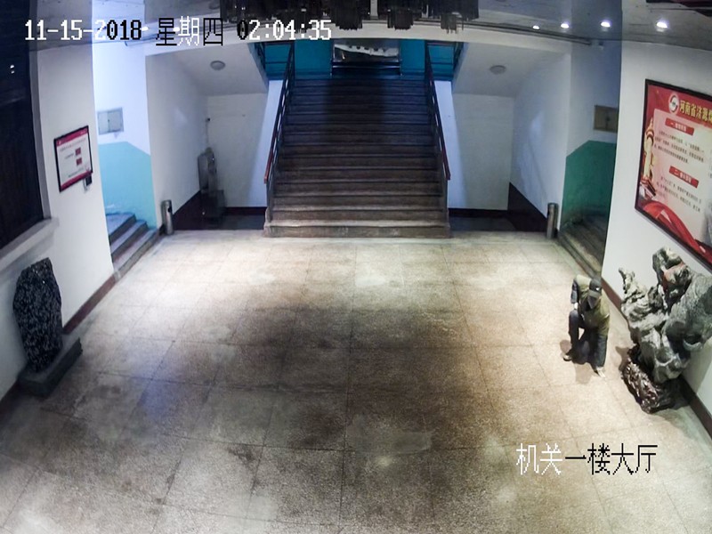 视频监控显示:11月15日凌晨1点56分,两名犯罪嫌疑人从南办公楼一楼破窗进入,凌晨2点03分进入老办公楼大厅,凌晨2点40分撬开财务部出纳室的防盗门,凌晨2点54分从老办公楼逃离,进入南办公楼。凌晨3点03分犯罪嫌疑人到达出纳室后窗外。